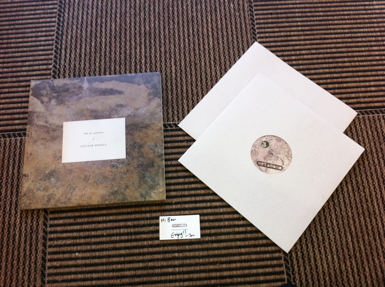 Metamono create music using only old analogue instruments, and have completely abolished digital recording and production as a rule. In fact they work around an innovative manifesto, which can be seen HERE at their website. Made up of musician/producer Jono Podmore, electronic wizard Paul Conboy and fine artist Mark Hill, they ban things like sampling, overdubs and even microphones from their music making regime. Stripping away the last few decades of electro music and building a new alternative from scratch, when sources are restricted, a greater degree of imagination has to be applied. The debut album ‘With The Compliments Of Nuclear Physics’ is a fascinating and highly rewarding record that spans four sides of vinyl, reflecting four different sides to the sound of these visionary electronic musical scientists.