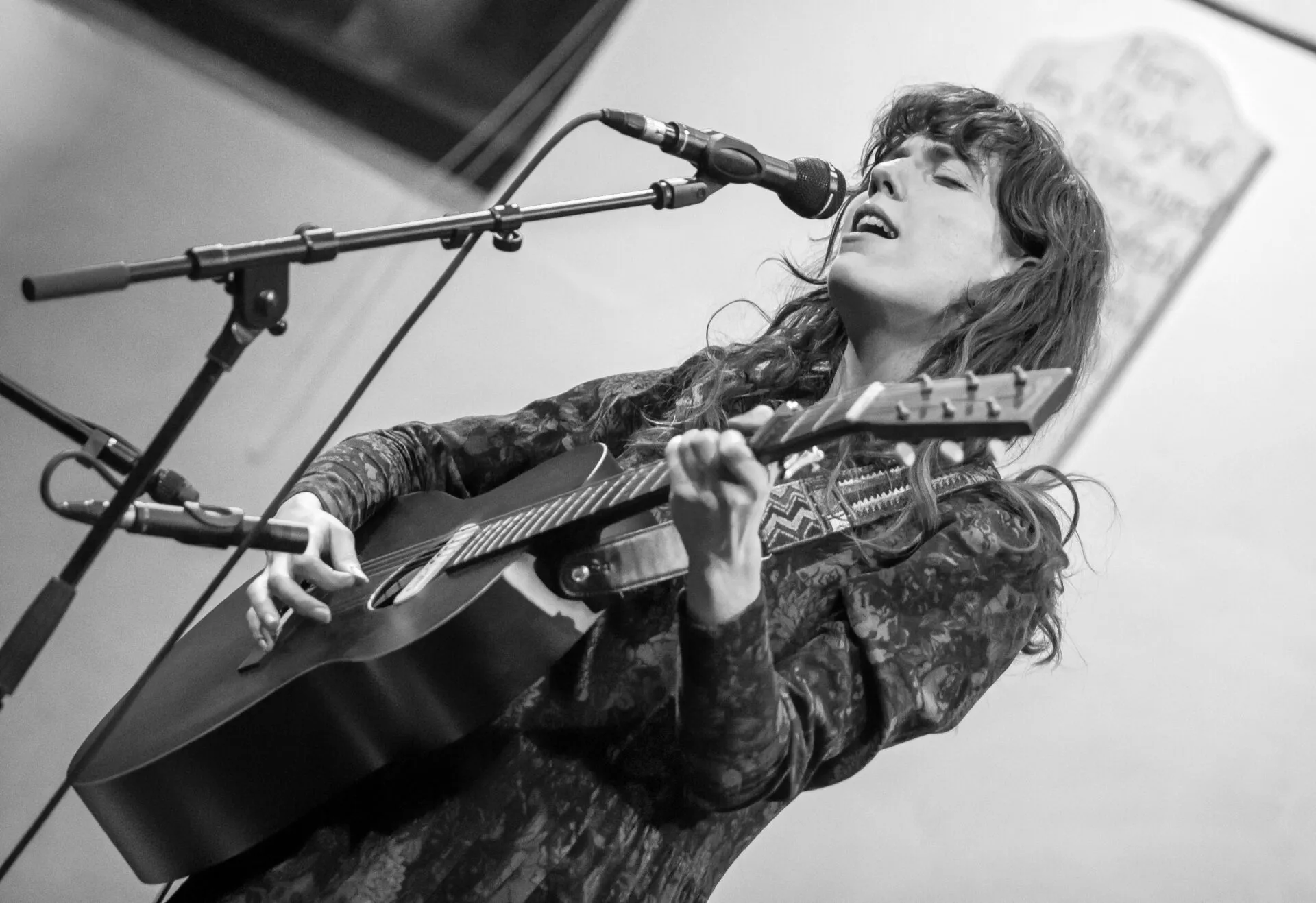 First to grace the NCEM stage this evening is Josh Finn, the man who is Wounded Bear. It is an apposite name under which he trades as he deals, primarily, in the hard currency of relationship break-ups. An as-yet-untitled song written only two days beforehand and inspired by Finn’s recent conversation with his 101-year-old neighbour, Beryl, shows there can be much more to the ending of a relationship than mere melancholy. Wounded Bear reveals therein both sides of love, one that breaks us and the other that then remakes us.