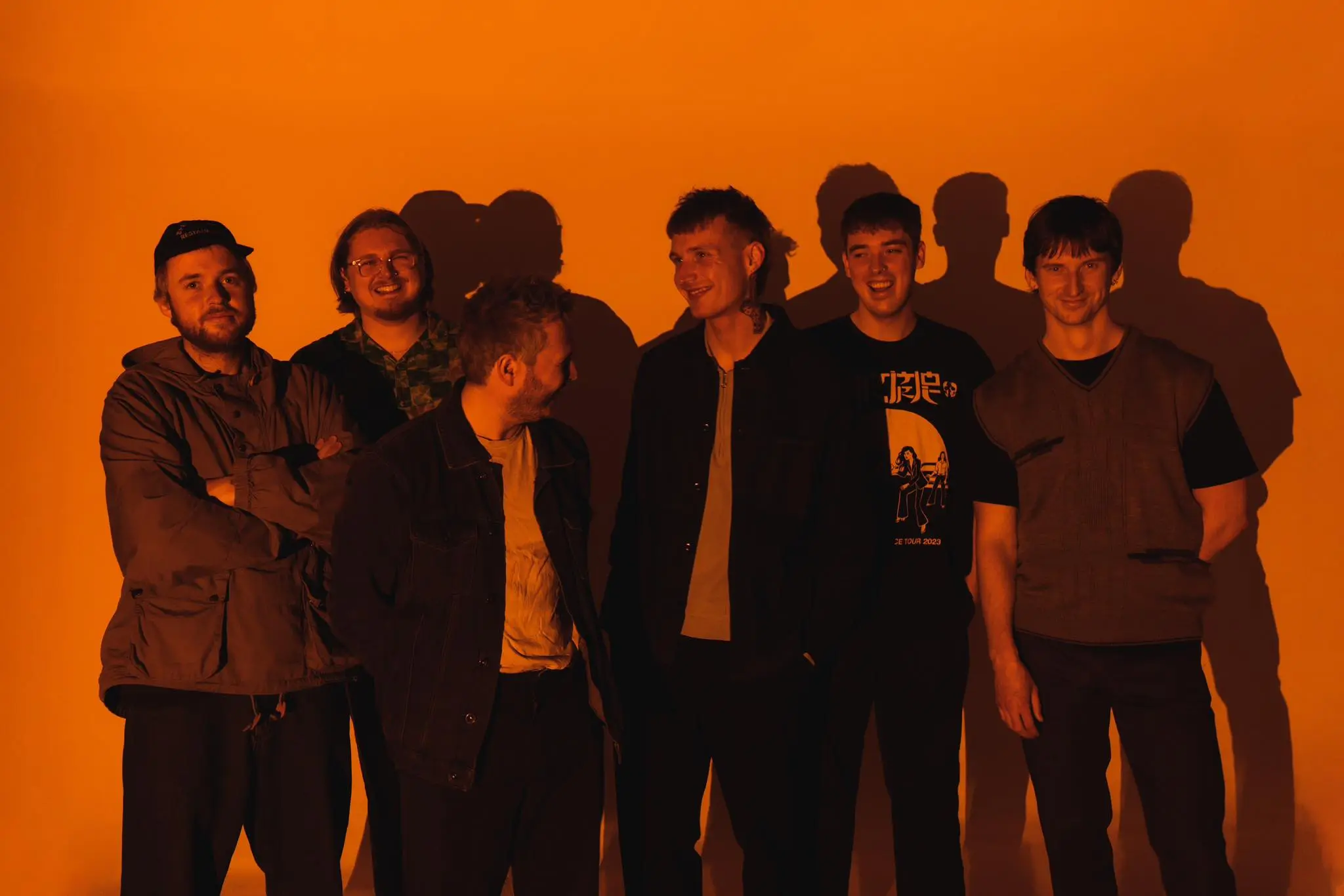 Adult DVD was originally formed out of lockdown boredom. Friends Harry Hanson (lead vocalist) and Greg Lonsdale (synths and vocals) experimented with synths and wrote over the internet together. As their musical ideas developed, they were joined by Jonathan Newell (drummer), Danny Blackburn (guitarist and synths), Jake Williams (synths) and George Manson (bassist) – and Adult DVD was borne. The Leeds six-piece were playing at the festival in Rotterdam and I sat down with all six for a very entertaining conversation.