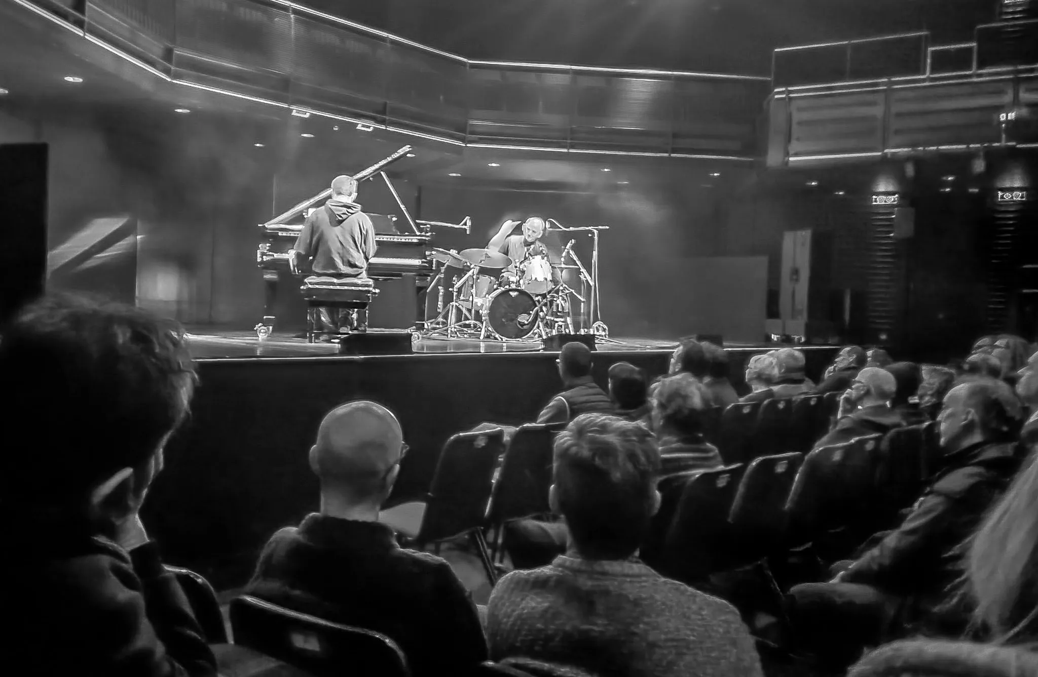 Sat behind his kit, a beatific look begins to emerge upon Seb Rochford’s face as he observes the delicacy of Kit Downes’ playing, the serenity of his smile enhancing an almost Zen-like calm that already prevails within this most intimate of settings.