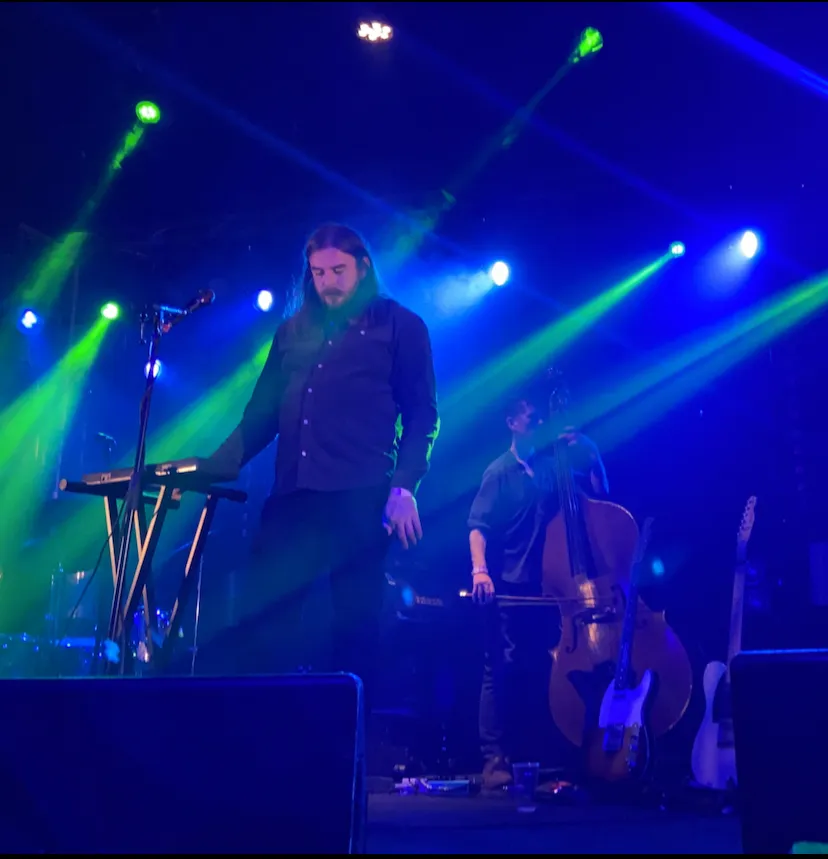 With the vocal intensity of Luke Kelly and immense musical dexterity, Flynn and his multi-talented band imbue the songs it with ambient sonics, submerging the room in intense liquid melodies punctured by tidal waves of double bass bows and electric futuristic bolts of thunder that could match the impressionistic wall of sound by the likes of My Bloody Valentine. Threats loom in the distance as we hear at he end of stunning tracks like ‘Kitty‘ echoing the dark drones of Dundalk shoegazers, Just Mustard. There was something truly beautiful and visceral about this gig, something universally human that resonated and connected the people with Flynn’s dark melismatic vocals, creating a drone to echo that of the double bass, synths and loops of the mixing desk behind him.