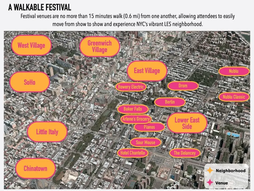 Founded in 2019 by music industry veterans Mike Bell, Lio Kanine, and Steven Matrick, The New Colossus Festival has quickly become the first stop in the US for many emerging international artists. Past festival alumni include Baby Queen (ZA), CHAII (NZ), Ducks ltd. (CA), GIFT (US), Jaywood (CA), Kiwi Jr. (CA), NOBRO (CA), Peel Dream Magazine (US), Penelope Isles (UK), Pom Poko (NO), Pom Pom Squad (US), Sid Simons (US), Slow Fiction (US), Sobs (SG), The Orielles (UK), Thus Love (US), Water From Your Eyes (US), Ultra Q (US), Zoon (CA) and over 750 other artists.