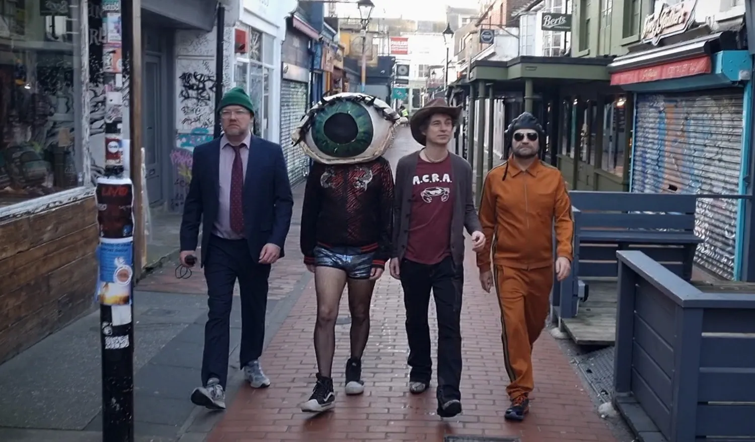 ‘AntiStar’ is the impish new single from Brighton based band En Heat, due for release via cult London label Blang on 26th March 2025. Today we are debuting the off the wall, accompanying video shot on location in Brighton and the infamous Hotel Pelirocco, the AntiStar lands escapes from his dimension, pursued by assassins ordered to kill the false ‘Disco Messiah’. Local detective, ‘Inspector Bovine‘, becomes suspicious.