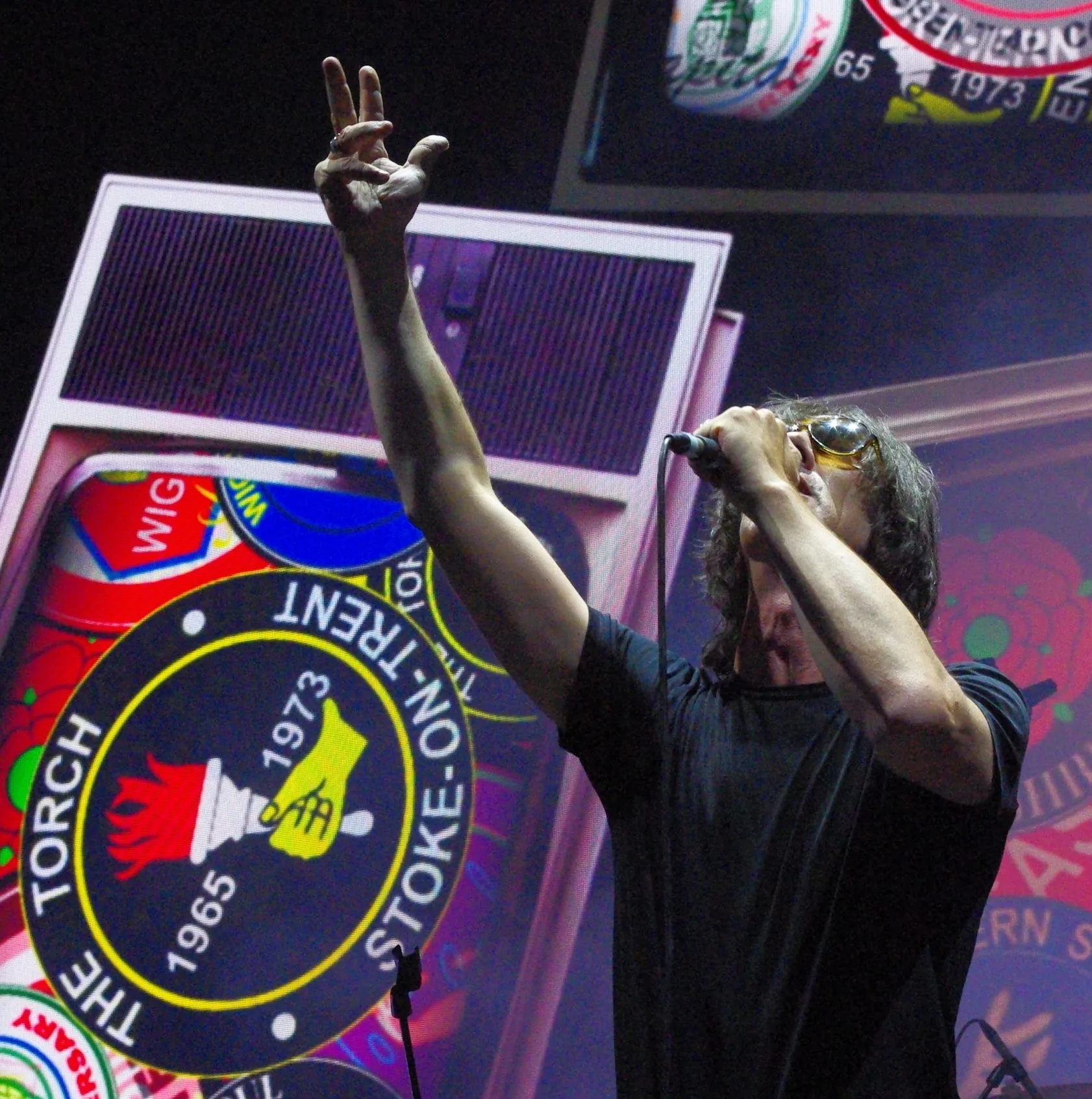 Complete with trademark shades and leather jacket, Ashcroft immediately acknowledges the poshness of the packed Blenheim courtyard before launching straight into an impassioned version of ‘Sonnett’ as the sun starts to set and the evening starts to darken. Ashcroft owns the stage immediately as he moves through ‘Space and Time’ and ‘Music Is Power’, the stage backdrop now adorned with colourful Northern Soul logos in tribute to Ashcroft’s hometown of Wigan.